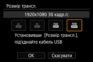 Можна встановити розмір відео для трансляції. Виконайте це налаштування після з’єднання пристроїв через USB.