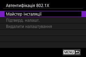 Якщо вибрати пункт [Автентифікація 802.1X], це дасть змогу налаштовувати, перевіряти або видаляти параметри автентифікації 802.1X (за допомогою майстра настроювання).