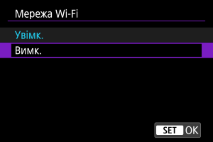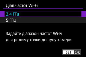 За потреби виберіть діапазон частот для використання камери в режимі точки доступу. Цей діапазон частот також застосовується до підключень Wi-Fi, установлених за допомогою функцій Bluetooth.