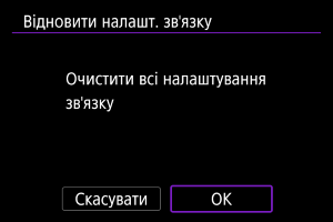Усі налаштування бездротового зв’язку можна видалити. Видалення налаштувань бездротового зв’язку дає змогу уникнути несанкціонованого використання цієї інформації особами, які отримали камеру для тимчасового користування.
