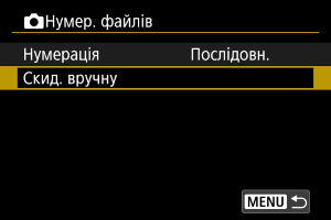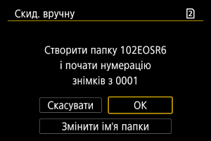 Коли виконується ручне скидання нумерації, автоматично створюється папка, у якій нумерація збережених зображень починається з 0001.