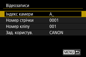 - За потреби призначте значення параметрів [Номер стрічки] й [Номер кліпу].