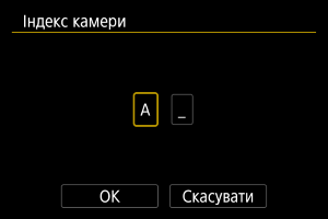 | (1) | Індекс камери | Дві літери від A до Z. Також можна використовувати знак підкреслення (_) як другий символ. Позначає камеру, що використовується. |