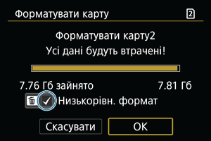 - Низькорівневе форматування можна скасувати під час його виконання, вибравши [Скасувати]. Навіть у цьому разі звичайне форматування буде вже завершено, і картою можна користуватися.