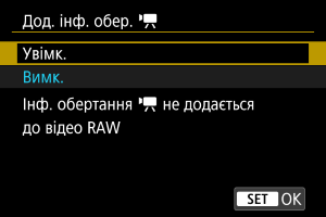 - Інформація про орієнтацію відео не додається, коли для параметра [
