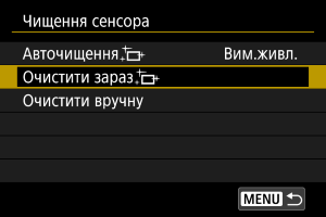 - Повторне чищення сенсора не призводить до суттєвого покращення результатів. Зверніть увагу, що відразу після чищення функція [Очистити зараз