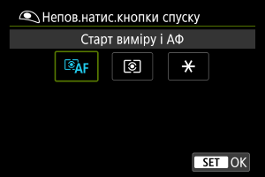 Укажіть функцію, яка застосовуватиметься натисканням кнопки затвора наполовину.