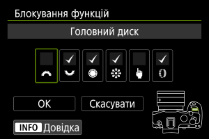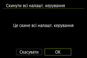 Якщо вибрати параметр [: Скинути всі налашт. керування], усі користувацькі налаштування елементів керування буде видалено.