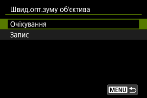Об’єктиви, оснащені кільцями фокусування та керування, для яких відображається це меню