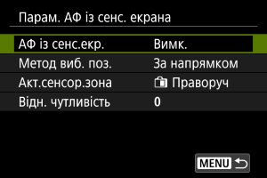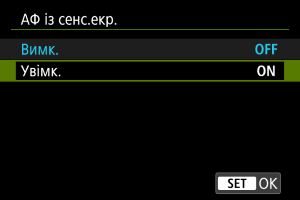 Виберіть [Увімк.], щоб увімкнути АФ із сенсорного екрана.