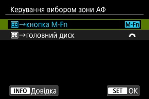- У разі використання об’єктивів з перемикачем кільця фокусування / керування це меню не відображається. Налаштувати функції кільця фокусування / керування можна на самому об’єктиві.