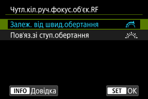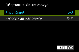 Можна змінити напрямок повертання кільця фокусування об’єктива RF для регулювання параметрів.