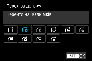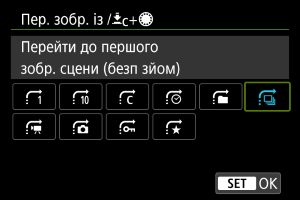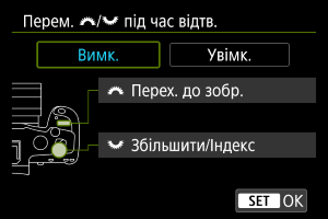 Щоб задати спосіб переходу між зображеннями на камері, можна повернути диск , одночасно натискаючи кнопку, якій призначено функцію [