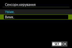 - Щоб вимкнути сенсорне керування, виберіть значення [Вимк.].