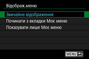 Можна вибрати [Відображ.меню], щоб задати екран меню, який першим з’являтиметься після натискання кнопки .