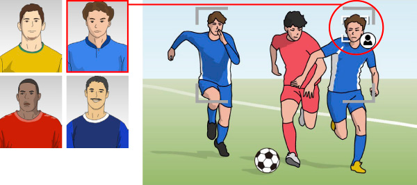 Registering people in advance allows the camera to prioritize detection and tracking of a specific person even in sports scenes with multiple players.