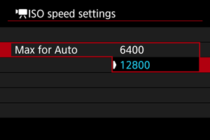 - You can register frequently used ISO speed setting values by specifying an option other than [AUTO] and selecting [Register].