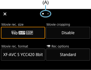 As in still photo shooting, press the button to access the Quick Control screen. Each press of the