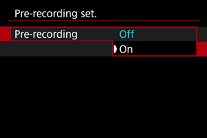 With pre-recording, automatic movie recording is already in progress a specified amount of time before you manually start recording.