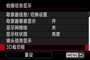 如果要裁切使用RF-S7.8mm F4 STM DUAL记录的短片,可以在短片记录屏幕上显示3D裁切框(在待机和记录期间)以了解编辑后的最终视角。