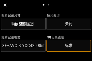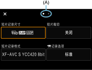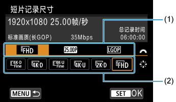 与静止图像拍摄相同,按按钮进入速控屏幕。如果同时选择(使用[