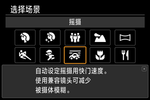 安装兼容[] (摇摄)功能的镜头可以减少被摄体模糊。