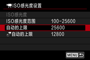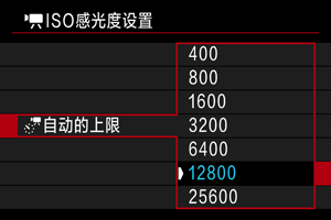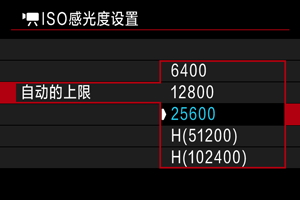 ]模式下进行4K延时/全高清延时短片记录时,可以设定ISO感光度上限。