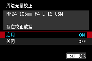 - 使用非佳能镜头时,即使显示[存在校正数据],也建议将校正设为[关闭]。