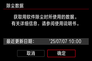 - 拍摄照片后,相机将开始收集除尘数据。获取除尘数据后,会出现一条信息。