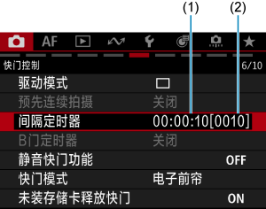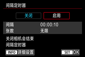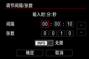 可在[0001]-[9999]范围内设定。要使间隔定时器不受拍摄张数限制持续拍摄直至您手动停止拍摄,请选择[无限]。
