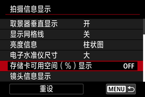 可以在屏幕上显示存储卡的可用空间。