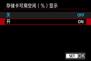 存储卡可用空间(%)显示