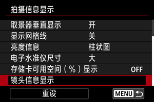 可以显示有关当前使用镜头的信息。