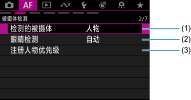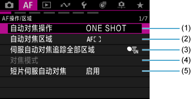 设置页菜单:自动对焦(静止图像)