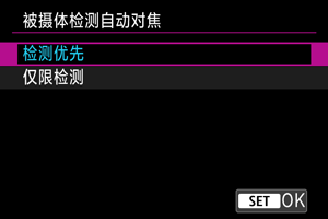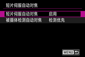 如果未检测到[: 检测的被摄体]()中设定的被摄体,可以指定是否使用短片伺服自动对焦。