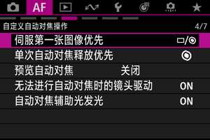 可以将可用的自动对焦区域限制在常用的区域中。选择可用的自动对焦区域并按以添加勾选标记[