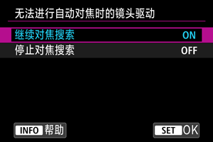 可指定无法自动对焦被摄体时应用的镜头操作。