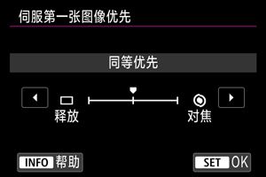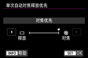 您可以为单次自动对焦指定是优先对焦还是优先释放时机(使用触摸快门拍摄时除外)。