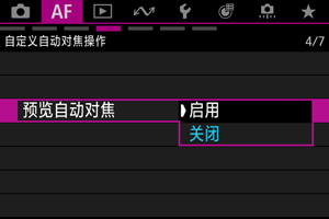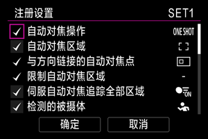 - 将注册选定的所有自动对焦设置。要清除或重新选择设置,请转动