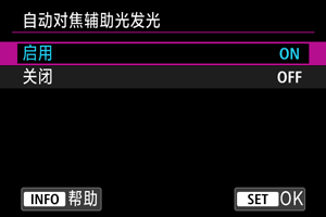 可启用或关闭相机或EOS相机专用闪光灯的自动对焦辅助光发光。