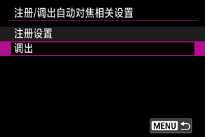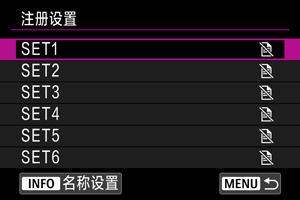 - 在尚未注册自动对焦设置的名称旁边会显示[