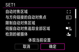 ]。选择[确定]以注册设置。有关自动对焦区域的详细信息,请参阅自动对焦区域。