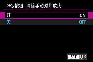 将此功能设为[开]后,在手动对焦模式下拍摄静止图像时,半按快门按钮可以取消放大显示。