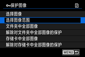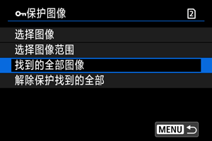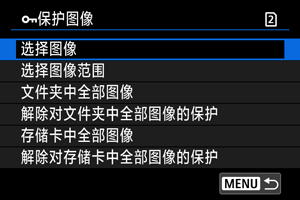 - 要取消保护,选择[解除对文件夹中全部图像的保护]或[解除对存储卡中全部图像的保护]。