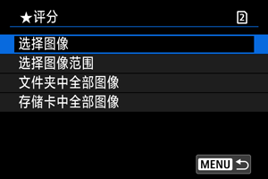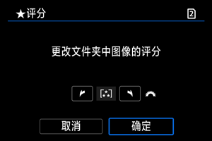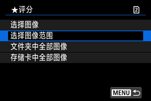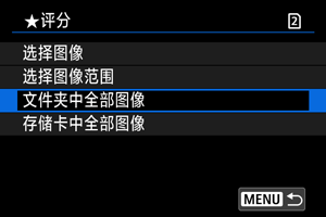 : 评分]下,选择[文件夹中全部图像]或[存储卡中全部图像]时,文件夹或存储卡中的所有图像都将被评分。