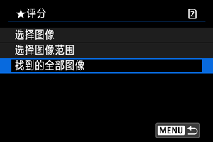- 如果选择[找到的全部图像],所有按搜索条件筛选的图像将按照指定评分。