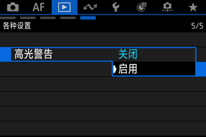 可在回放屏幕中以闪烁的方式显示曝光过度的高光部分。为了更忠实再现闪烁区域的渐变效果,请将曝光补偿设为负值,然后再次拍摄以获得更佳效果。