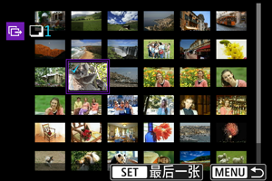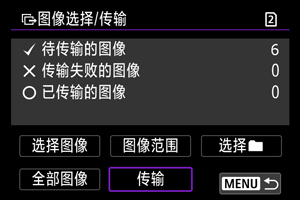 从[图像选择/传输]屏幕中,可以选择多张图像并一次性传输。