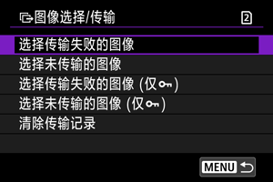 - 清除传输记录后,可选择[选择未传输的图像]并再次传输存储卡中的全部图像。