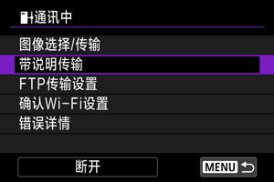 - 无法从[带说明传输]屏幕选择其他图像。要选择其他图像来进行带说明传输,请在进行这些步骤前先查看该图像。